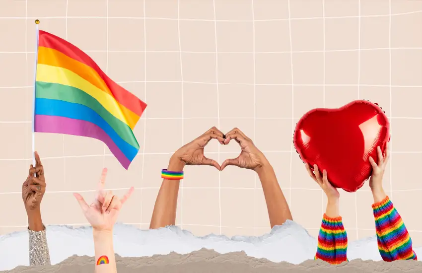Foto: LGBTQ+ pride celebration with hand and crowd cheering remixed media rawpixel.com