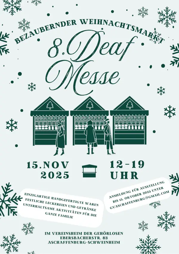 Gerne veröffentlichen wir Ihre Termine kostenlos. Senden Sie uns die Informationen – gerne ergänzt durch Fotos oder Videos – an info@deaf24.com.
