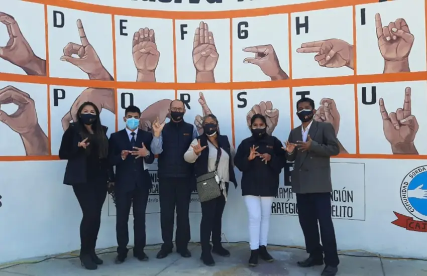 Die Gebärdensprache ist in Cajamarca heute sogar öffentlich sichtbar: Gemeinsam mit der Staatsanwaltschaft malte die Asociación Holanda das Gebärdenalphabet an die Stadionwand der Stadt. Ein starkes Zeichen für Inklusion!